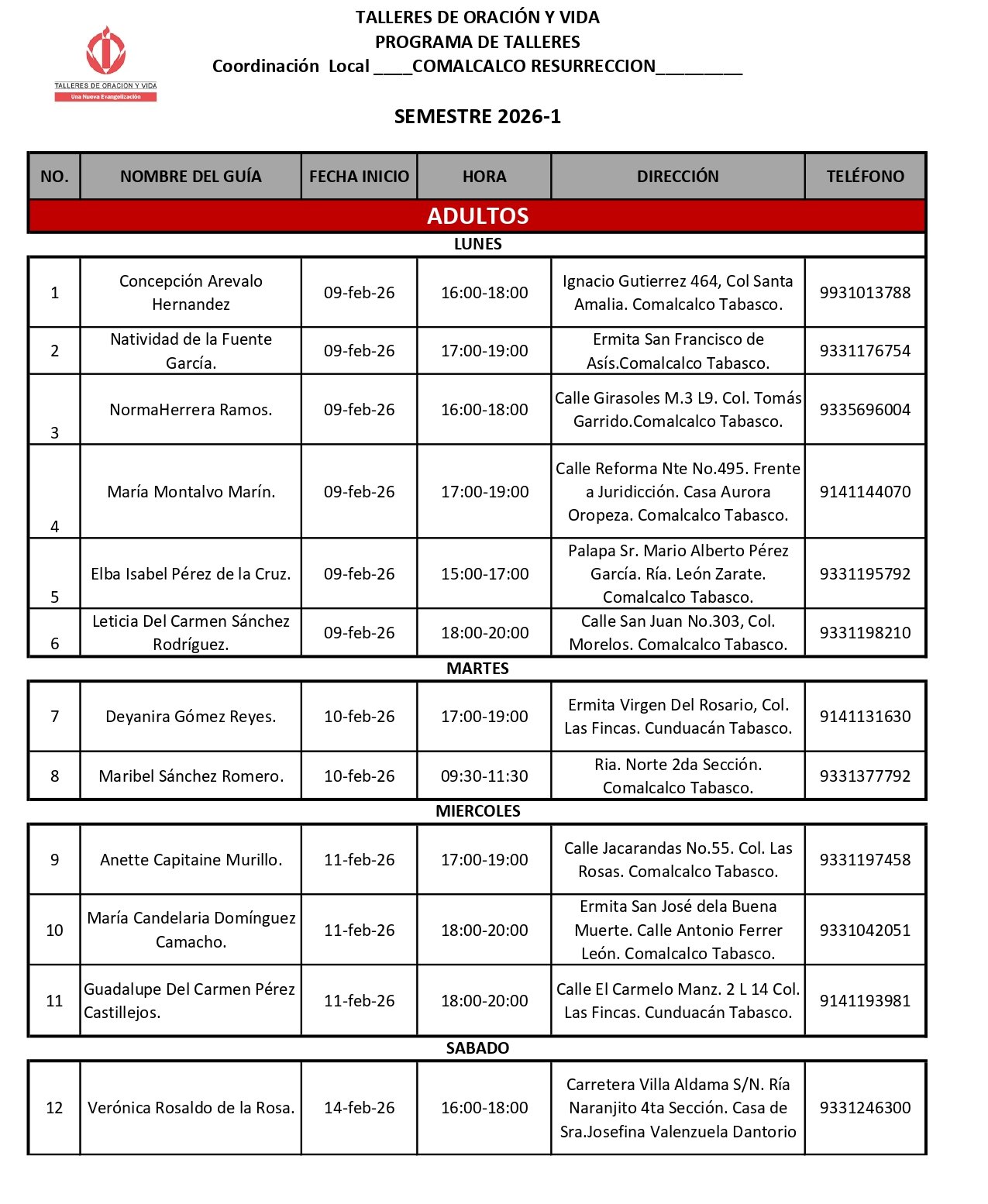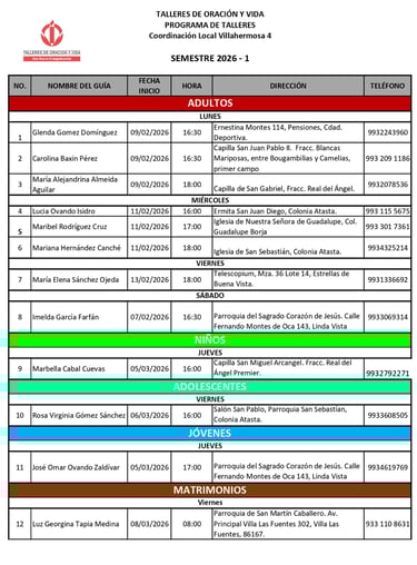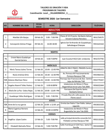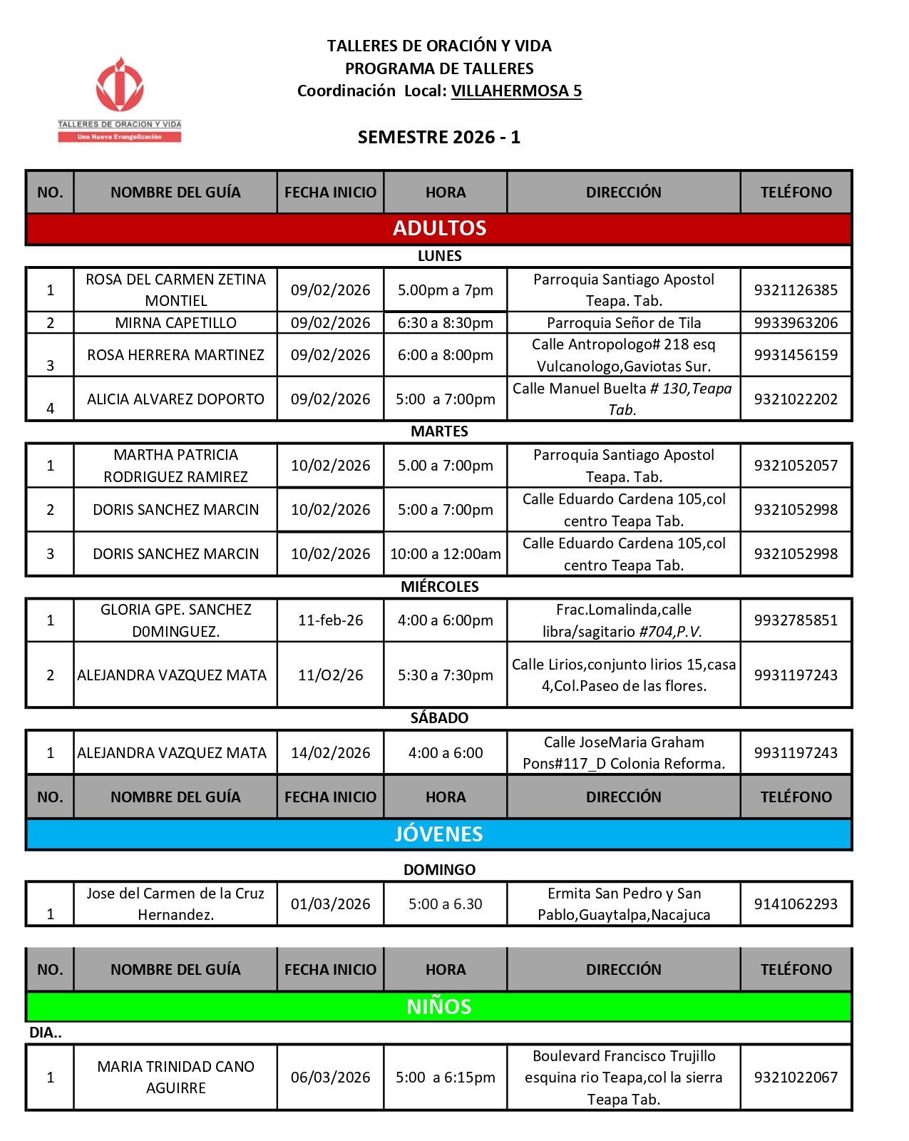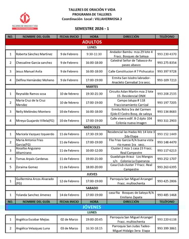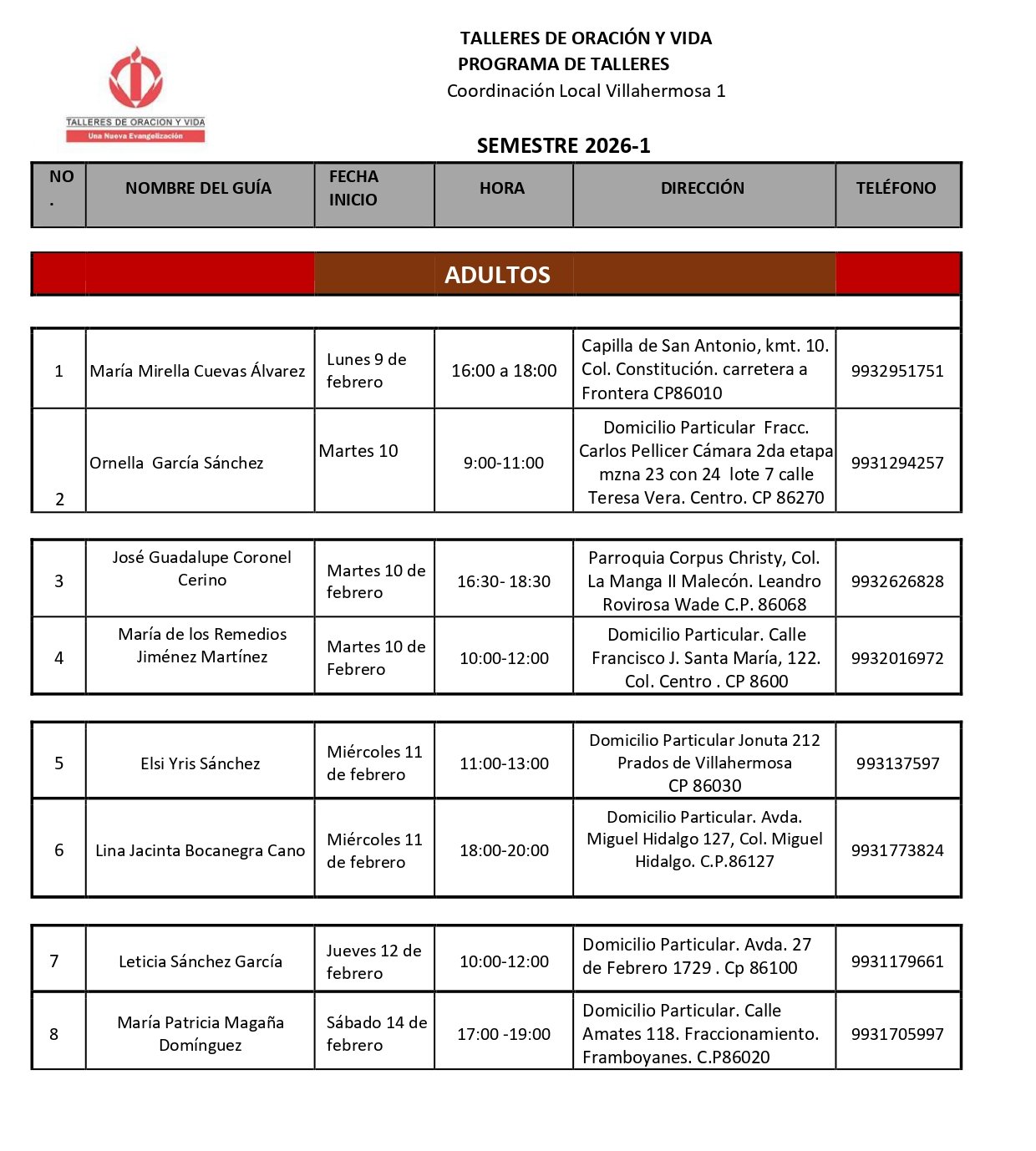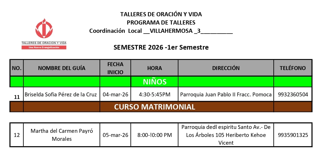 Encuentra talleres de Oracion y vida en el sureste de México, Tabasco y Chiapas Consulta los directorios telefónicos que hemos subido para facilitar tu búsqueda.