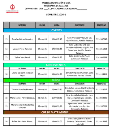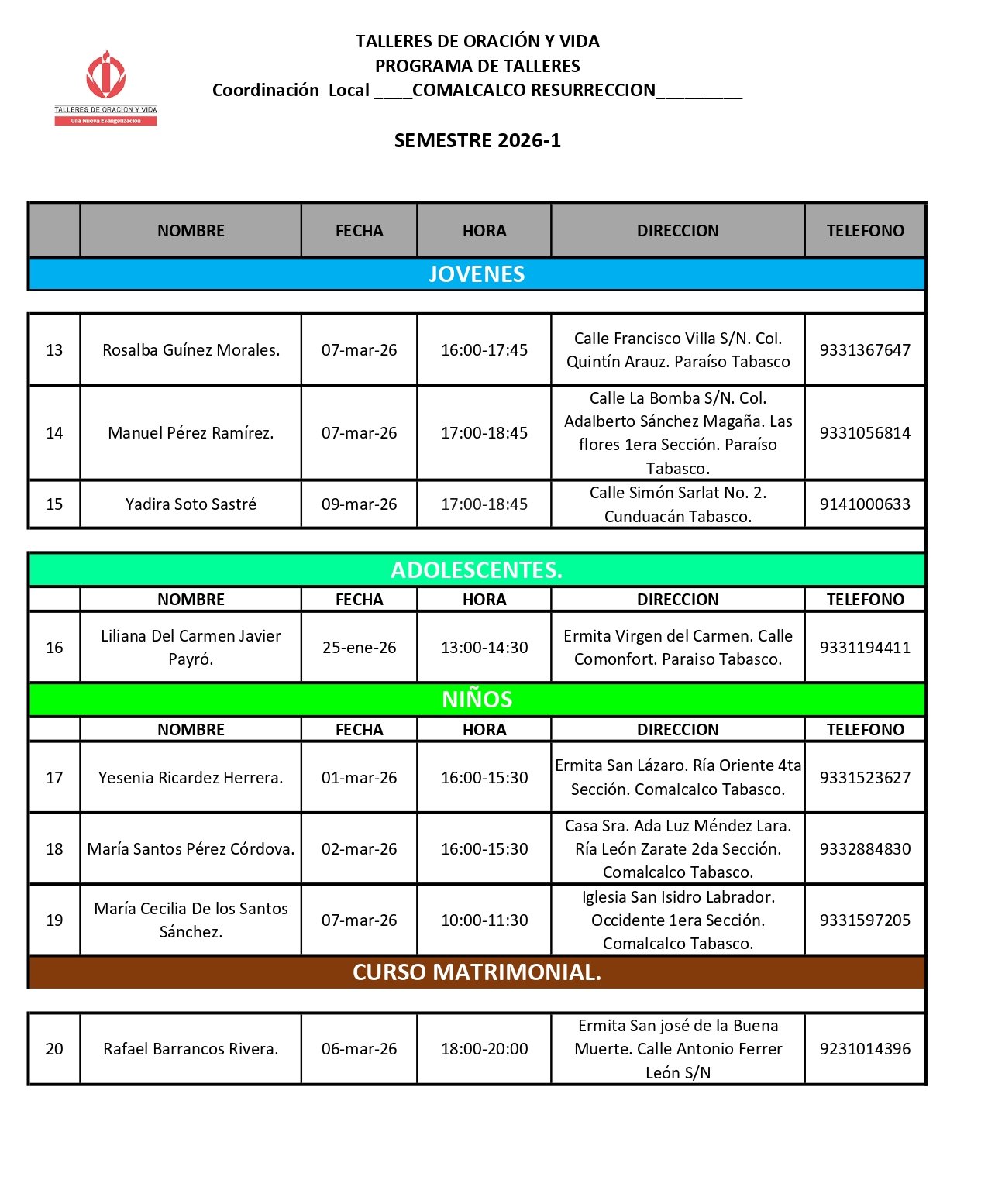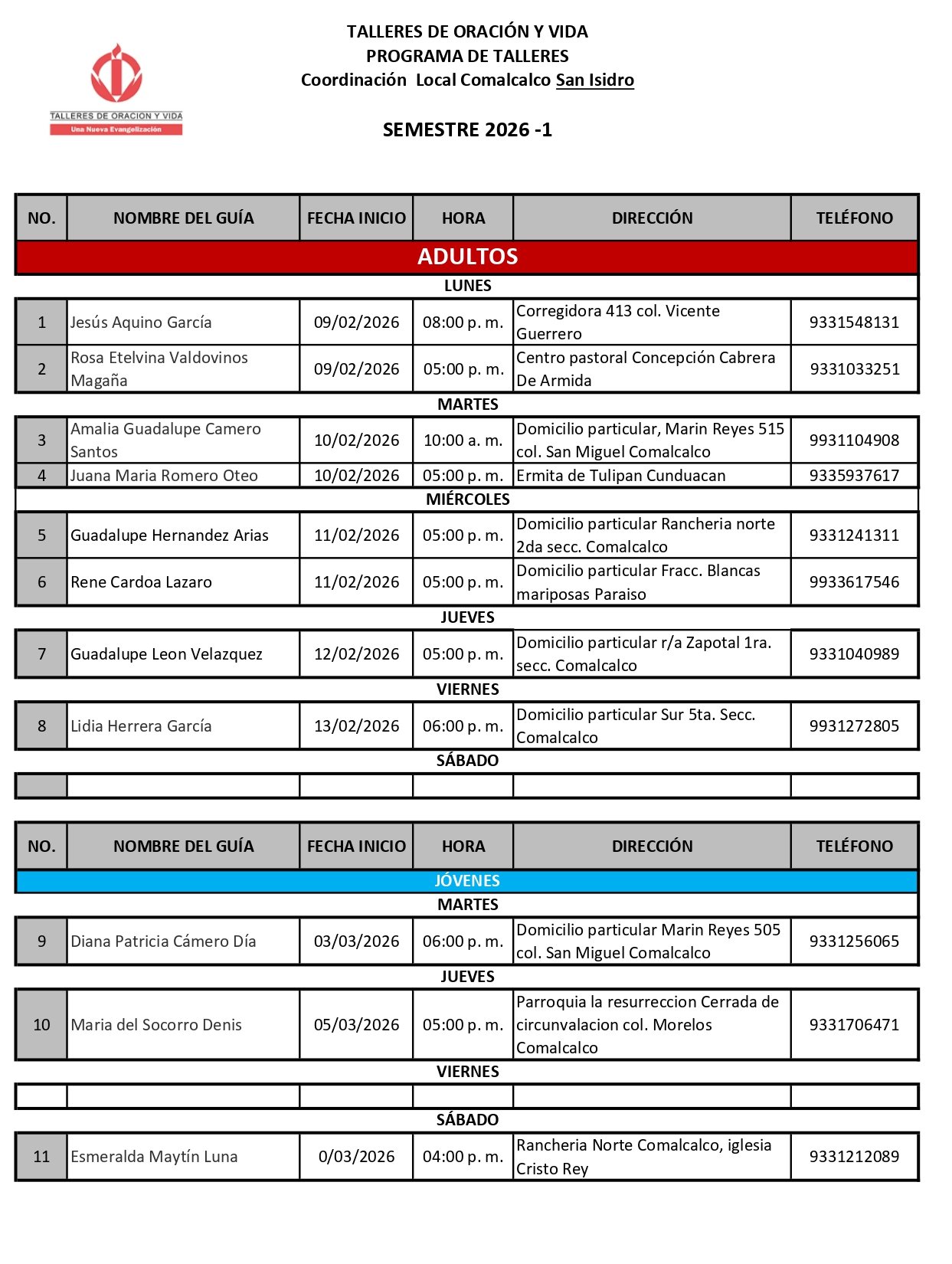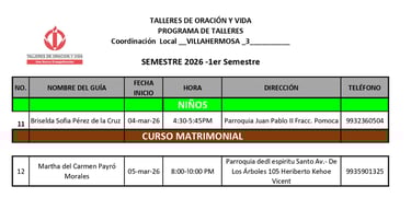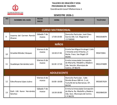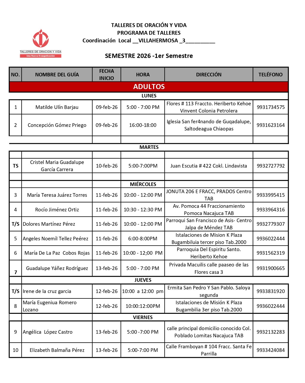 Encuentra talleres de Oracion y vida en el sureste de México, Tabasco y Chiapas Consulta los directorios telefónicos que hemos subido para facilitar tu búsqueda.