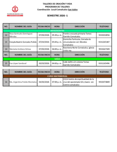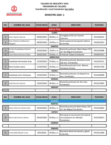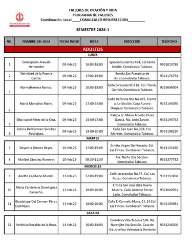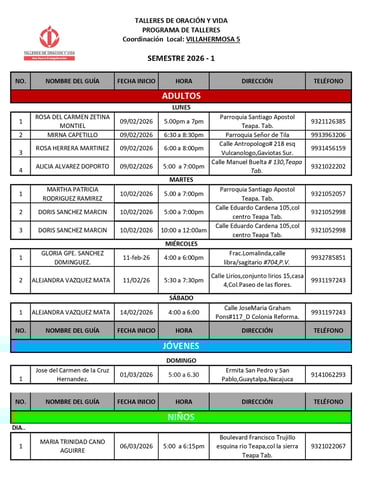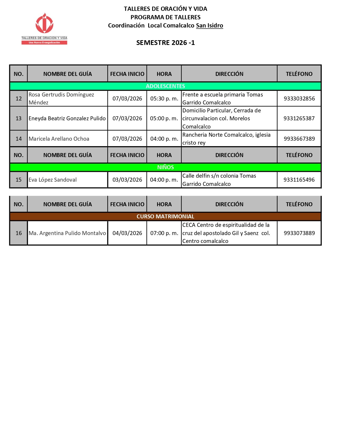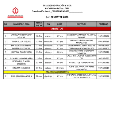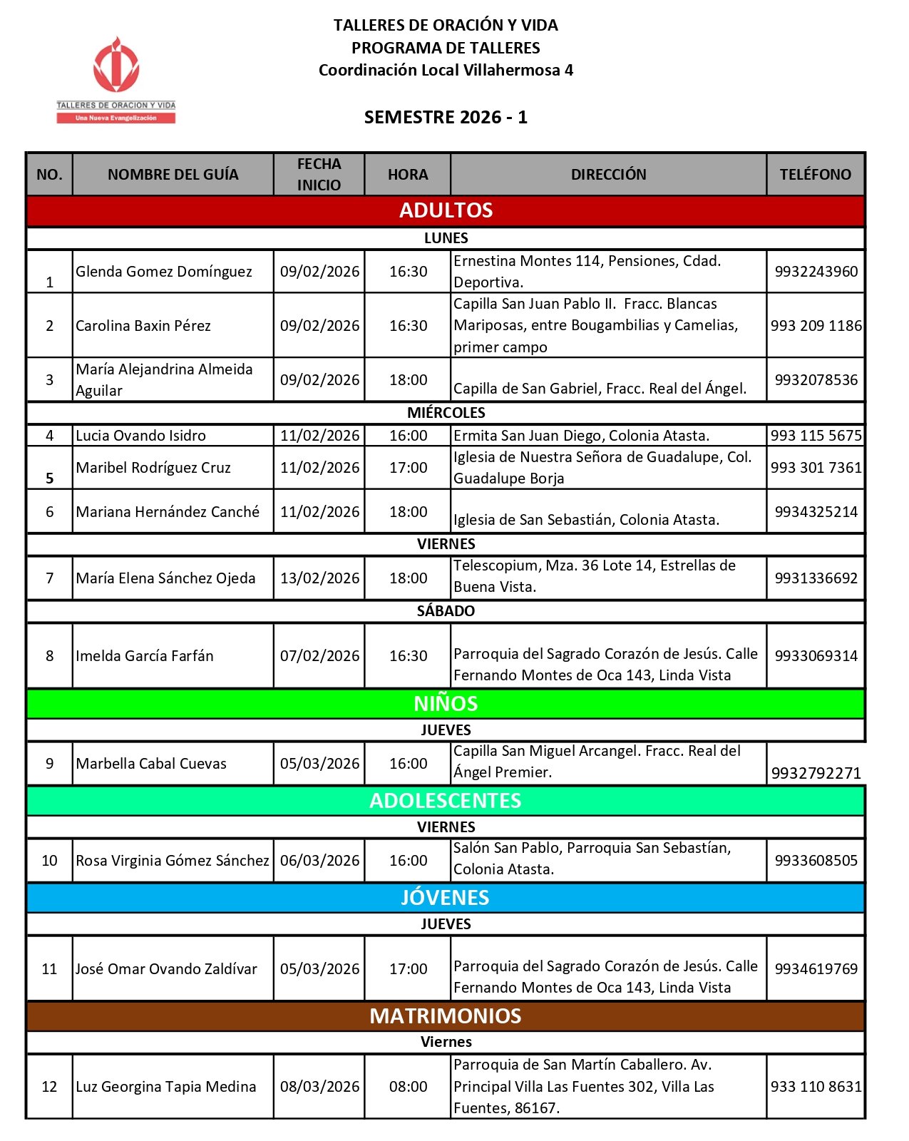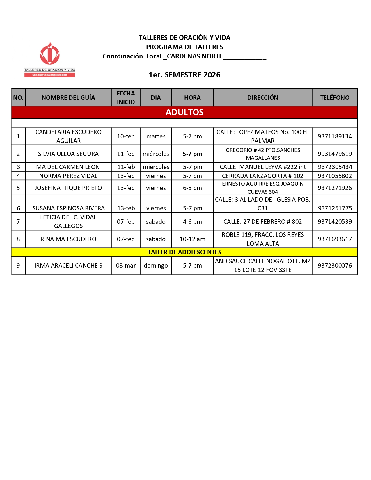 Encuentra talleres de Oracion y vida en el sureste de México, Tabasco y Chiapas Consulta los directorios telefónicos que hemos subido para facilitar tu búsqueda.